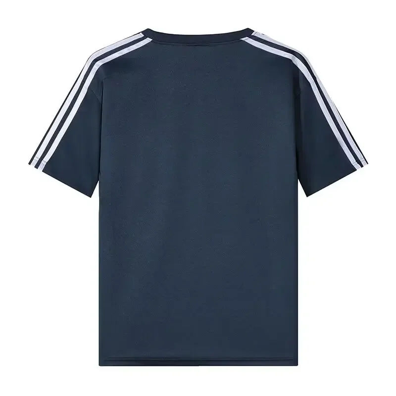 New Sporty Casual Stripe Short Sleeve T-Shirt Men's Ice Sensation Quick Dry Summer Harajuku Style round Neck Unisex Trendy Top