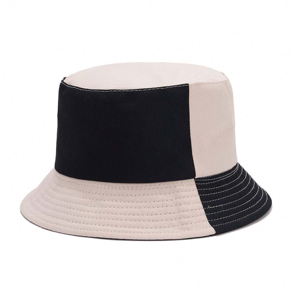 New Sporty Striped Checked Cotton Bucket Hat Contrasting Patchwork Two-Color Sunscreen for Outdoor Vacation Fisherman Shade