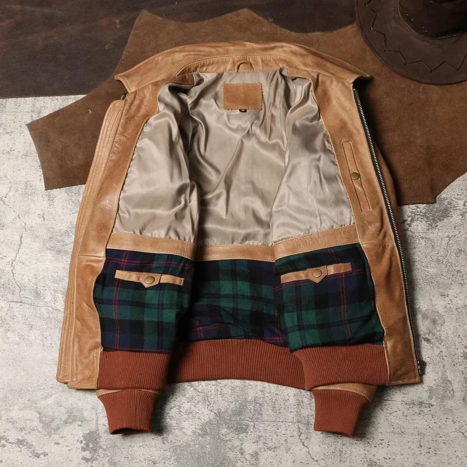New Spring Casual Genuine Leather Jacket Men Natural Sheepskin Motorcycle Leather Jackets Red Oil Wax Slim Fashion Clothing