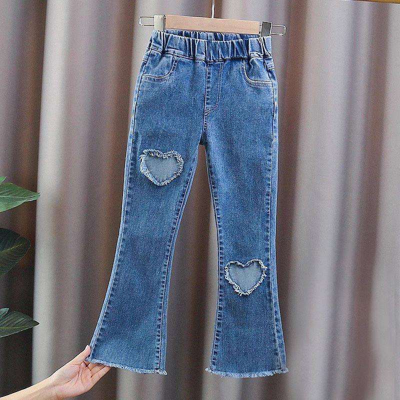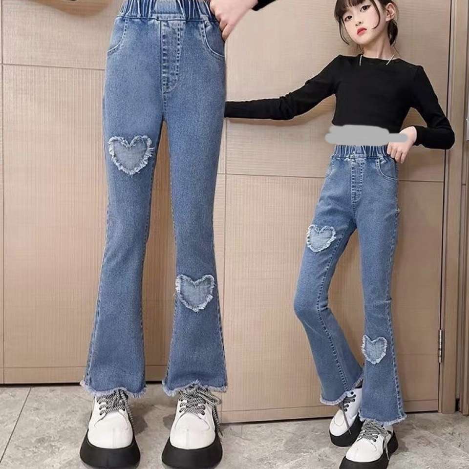 New Spring Children Denim Jeans Autumn Summer Breathable Cotton Formal Washed Dark Kids Teenagers Girls Mid Waist Straight
