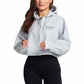 New Ssyle Women Crop Top Hoodies & Sweatshirts Short Crop Top Plain Zipper Hoodie Solid Color for Women Casual