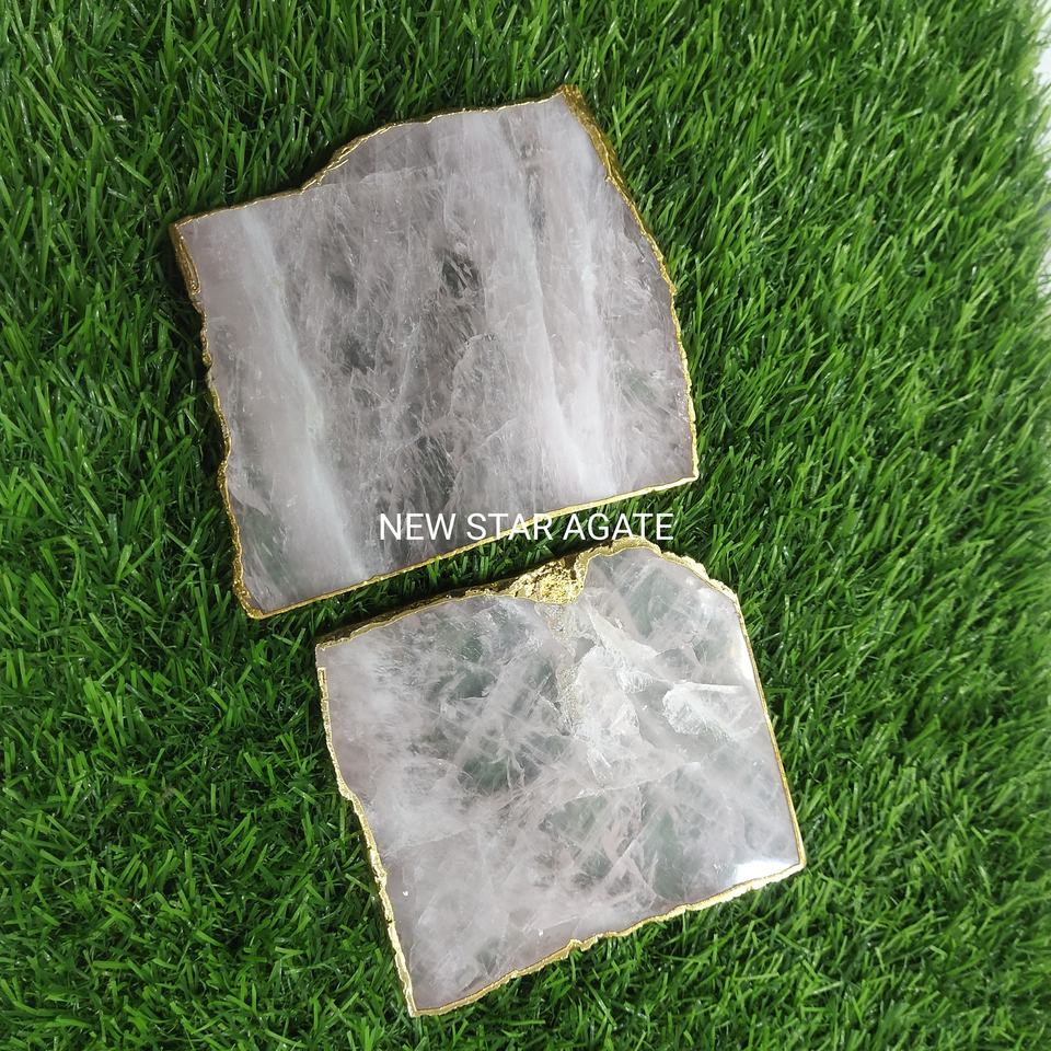 New Star Agate Bulk Rose Quartz Coaster Natural Crystal Gemstone Golden Edge Semi-Precious Stone Love Home Decoration Crafts