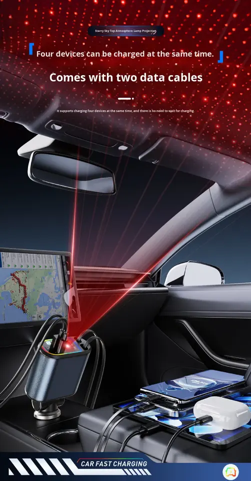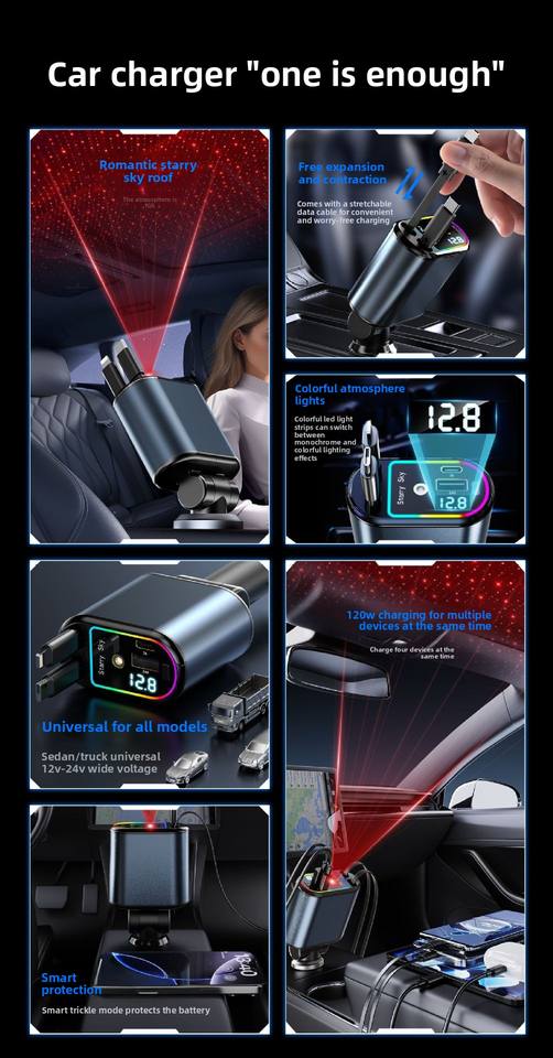 New Starry Sky Fast Charger 120W Retractable Cable iphones 17 Car Charger Multi-Function Digital QC3.0 Mobile Phone Charger
