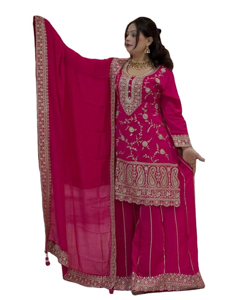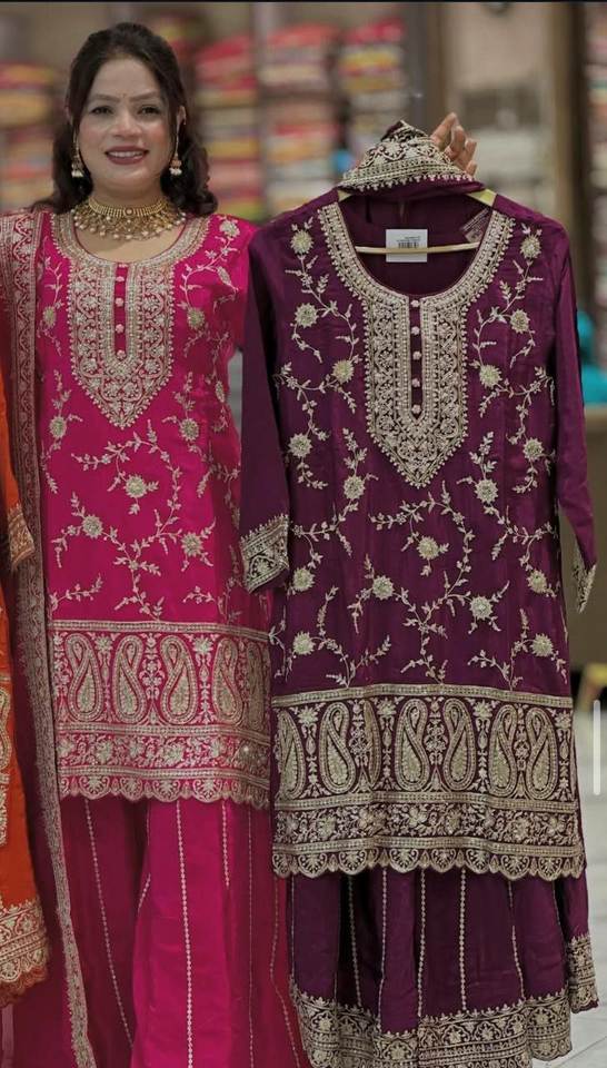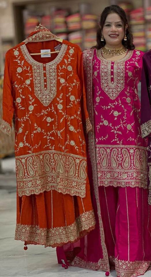 New Stock Wedding & Party Winter Silk Material Three Piece Salwar Suit Bride Women Wear M to XXL Size