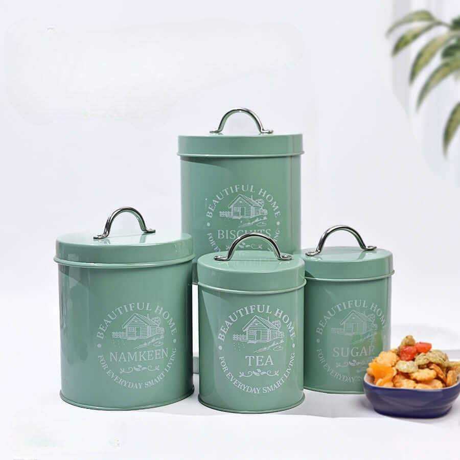 New Storage Container Canister Jar Metal Food Spices Holder Box With Lid for Kitchen Store in Hammered Design