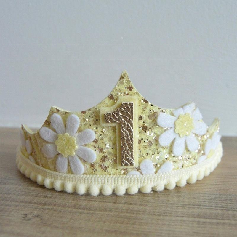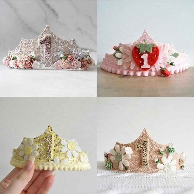 New Strawberry Flower Birthday Crown Headband Sequined for Baby's First Birthday Ramadan Graduation Party Decoration Headwear