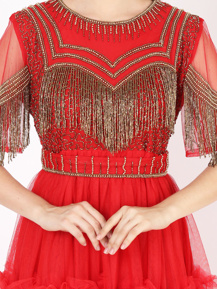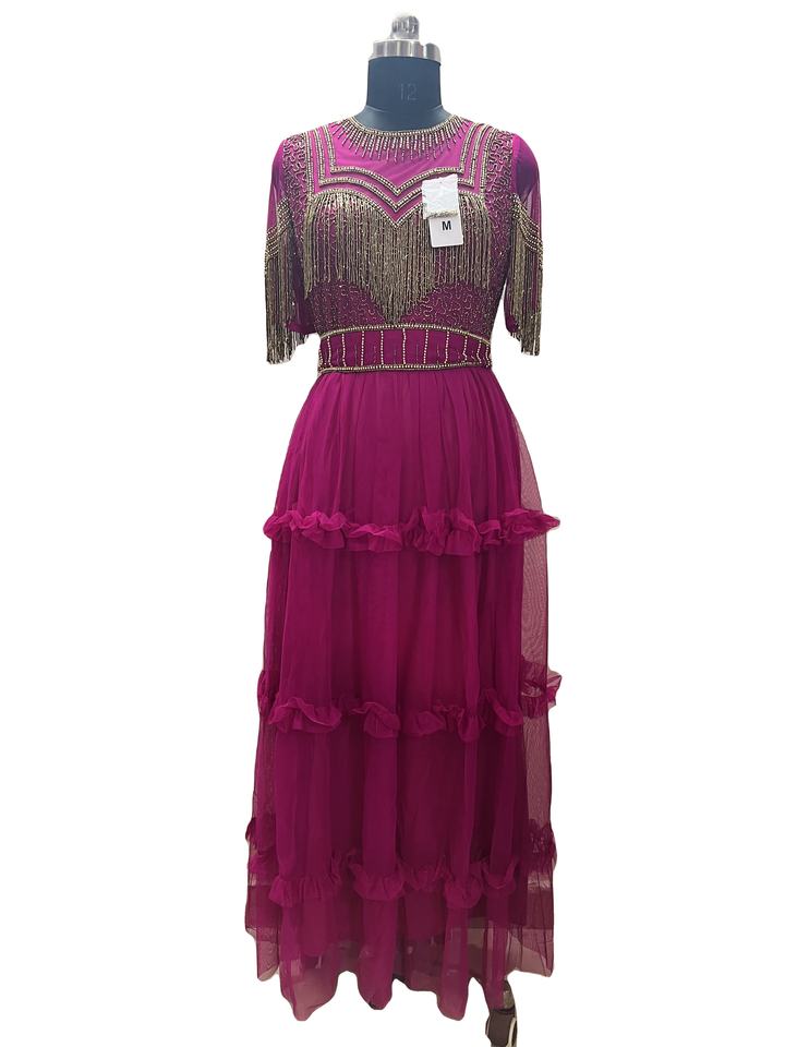 New Stunning Long Pleated Ruffle Net Belt Skirt Dress With Heavy Embroidered Dress Vacation Celebration Party Cocktail Wear Eid