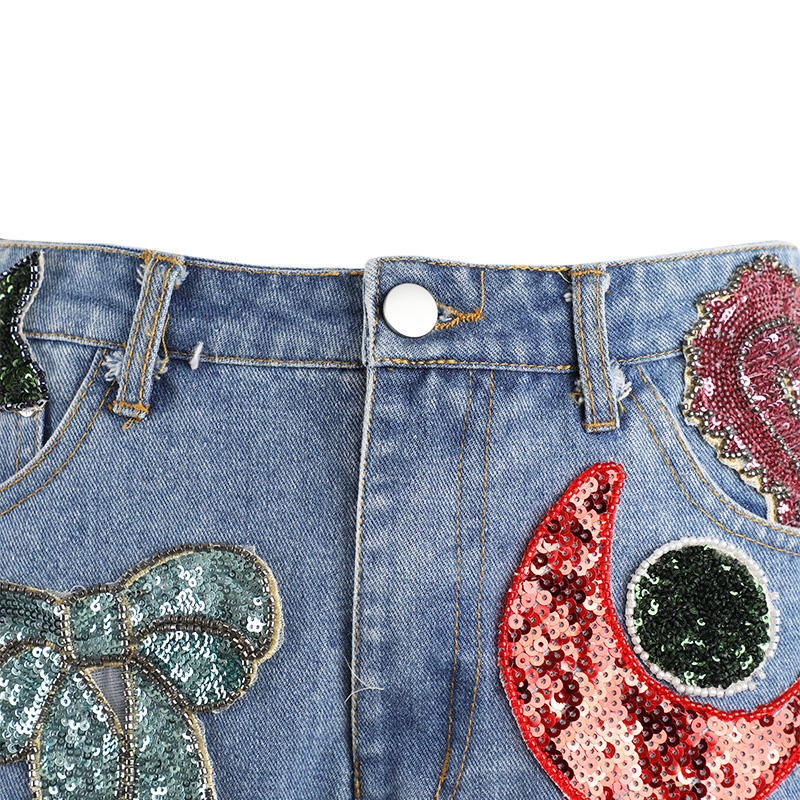 New Style Beaded Sequin Applique Women Sexy Mini Hot Denim Jean Shorts for Girls