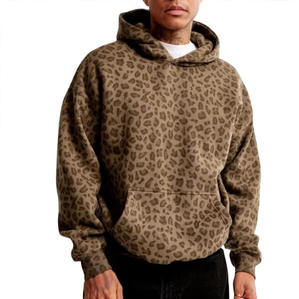 New Style Bulk Quantity Heavyweight Men Hoodie 2026 New Fashion Your Own Logo Men Leopard-print Hoodies For Adults