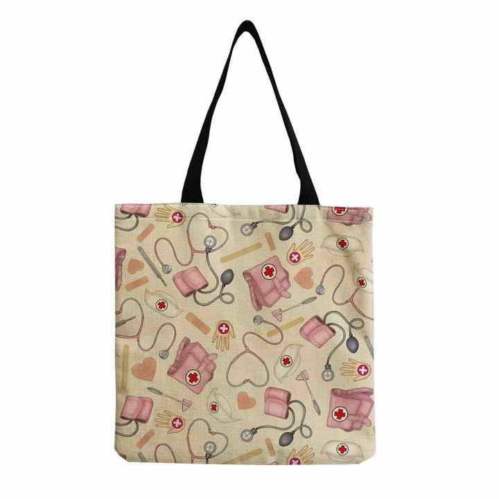 New Style Canvas Tote Bags Custom Reusable Shoulder Tote Bag Printed Pattern Women Medical Print Handbags Portable Eco Friendly