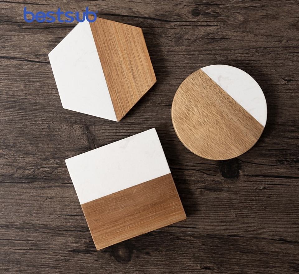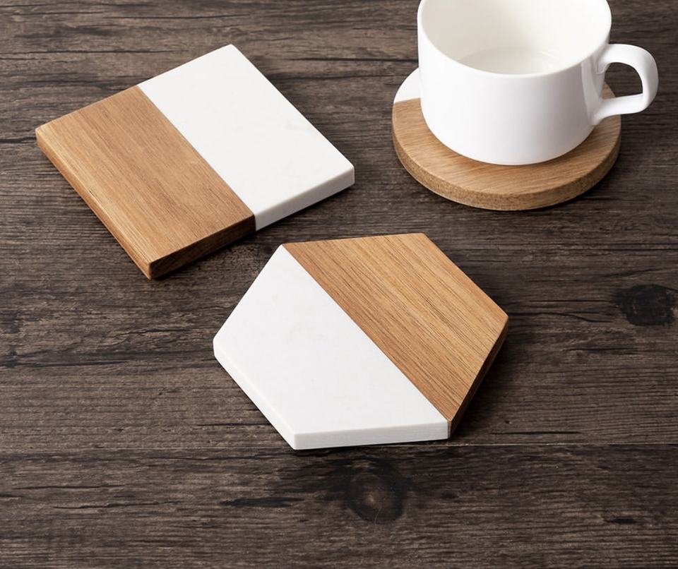 New Style Christmas Gift Marble Coaster Set of 4 Pcs Latest Design Marble Wood Coaster for Drinks Mug Glass Tea Cup Coasters