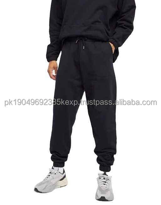 New Style Cotton Black Mens Fleece Lined Set Loose Hoodie and Tracksuit Jogger Set