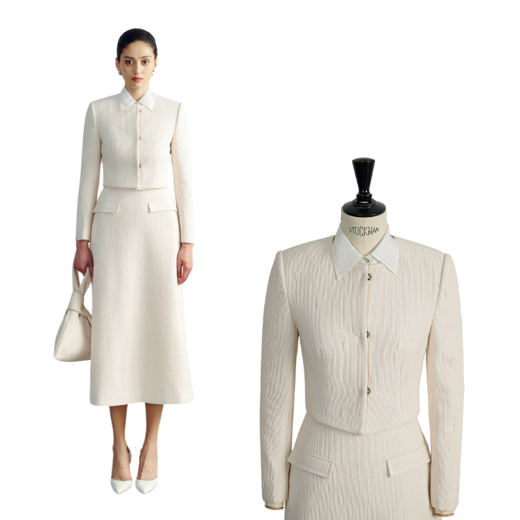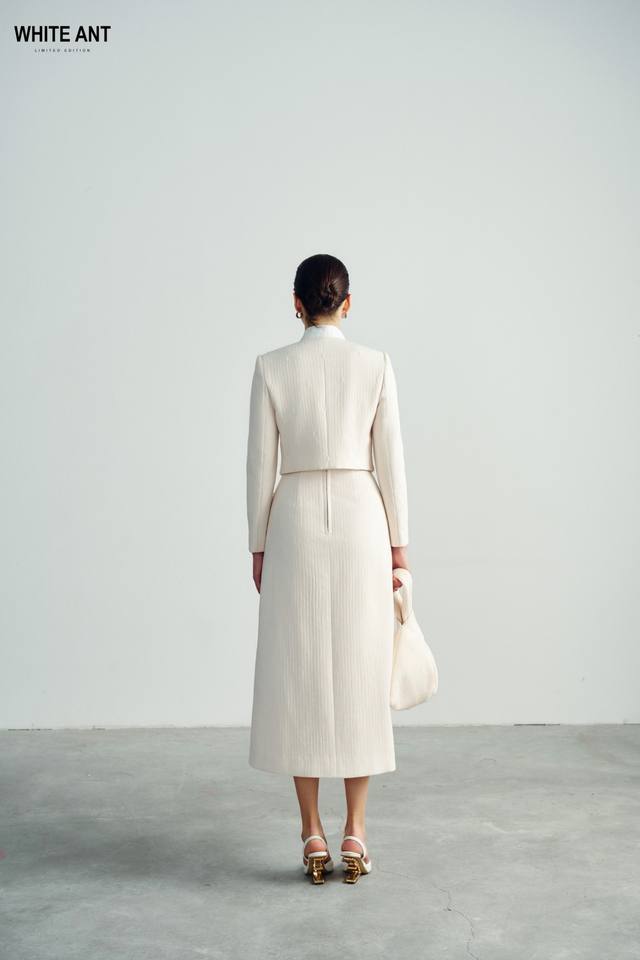 New Style Elegant JUHI CROPPED JACKETS Long Sleeve Women's Jackets Good Quality Embossed Jersey Knit Fabric WHITEANT Vietnam