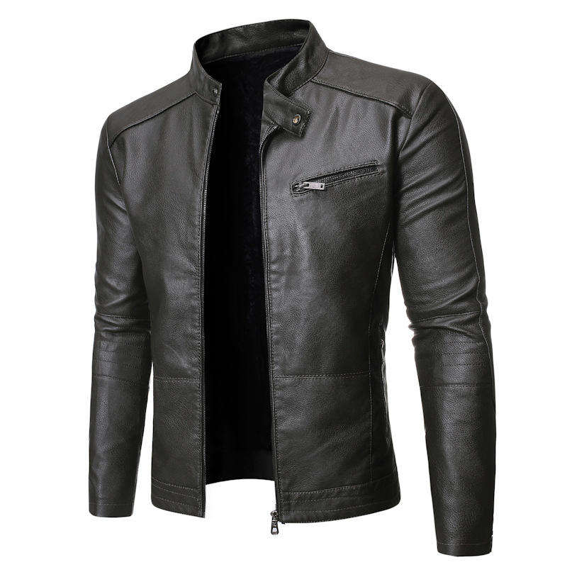 New Style Fashion Zipper up Leather Jacket High Quality Men Fashion Leather Jacket Custom Logo Outdoor Wear Comfortable Jacket