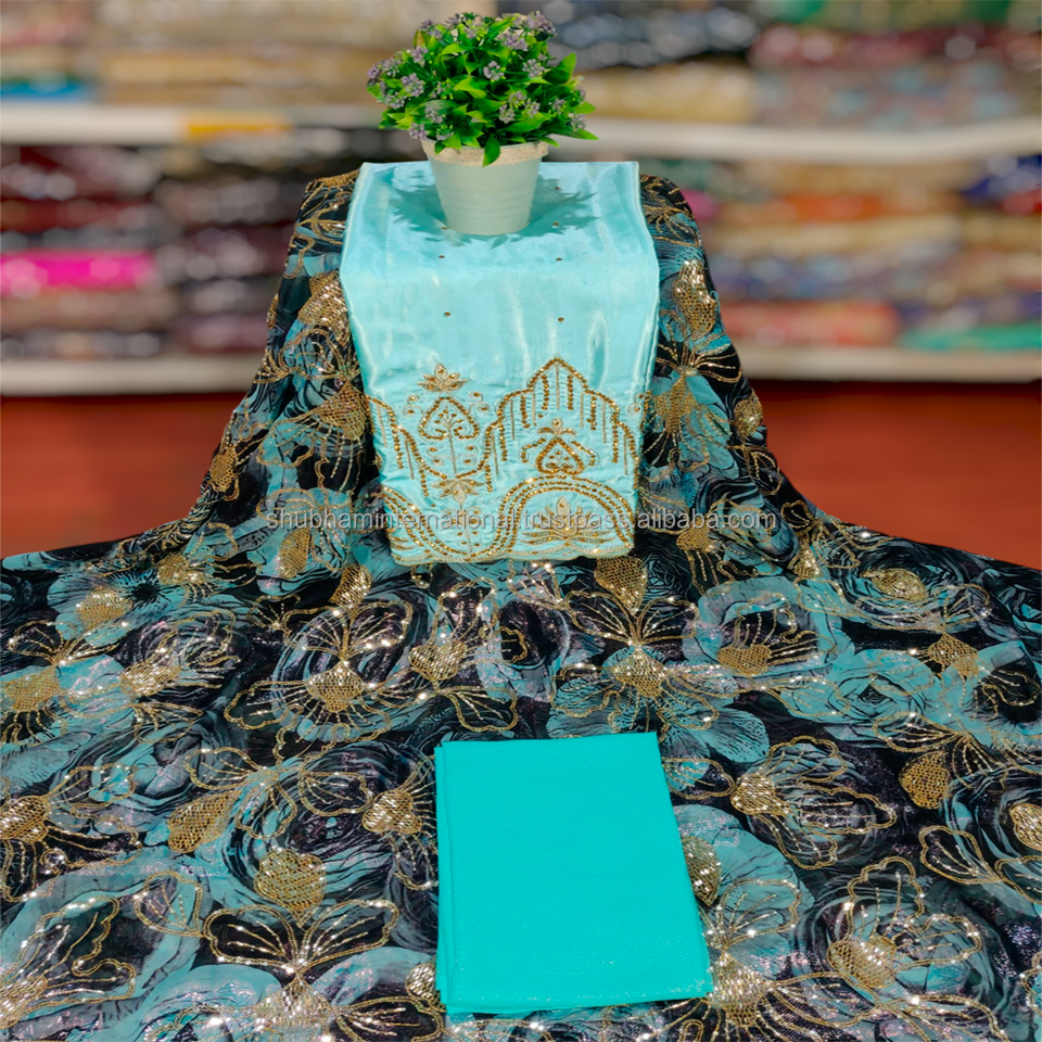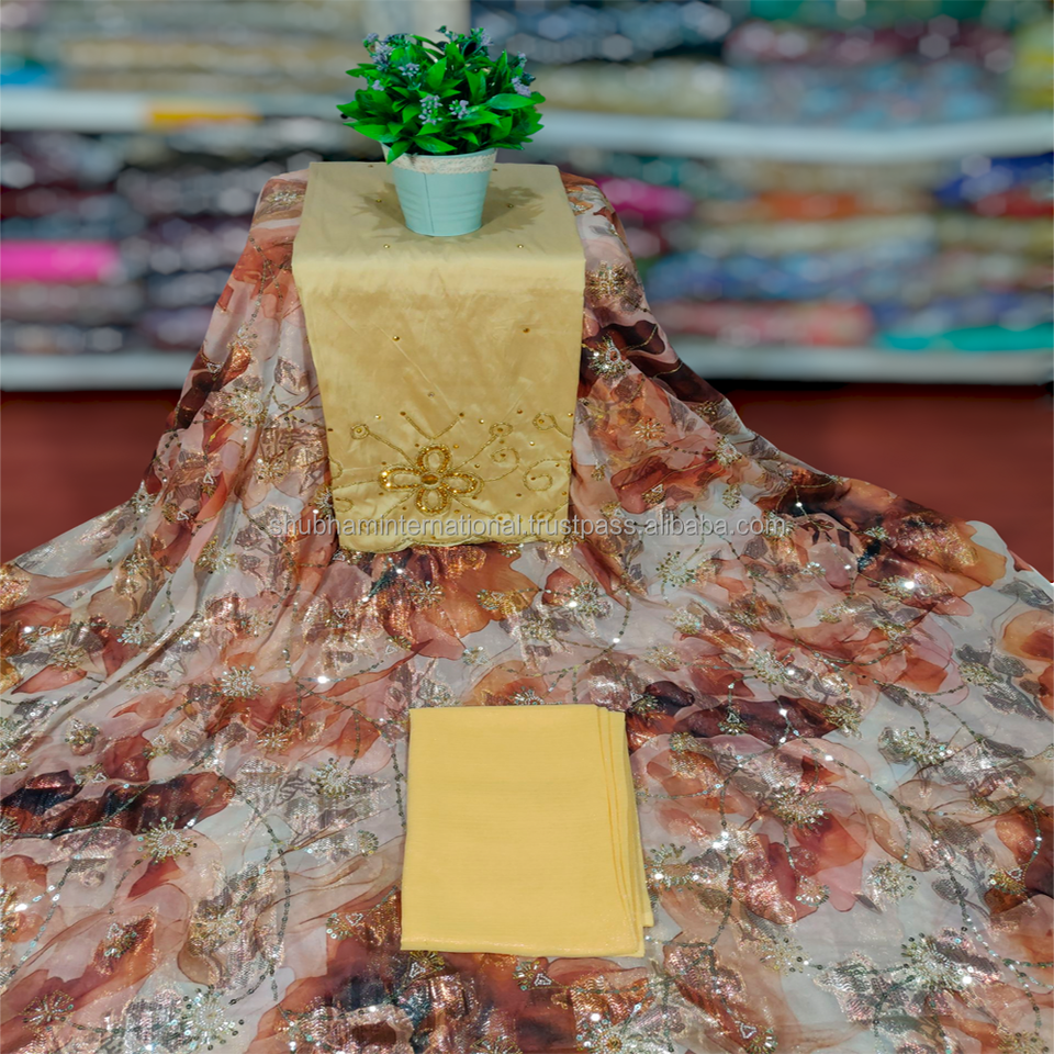 New Style Gold Stone Jacquard Plain Women's Beaded Dirac Dress-Soft Viscose Fabric for Evening Wedding Partywear