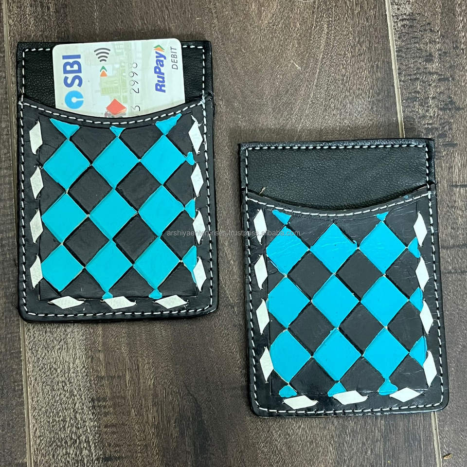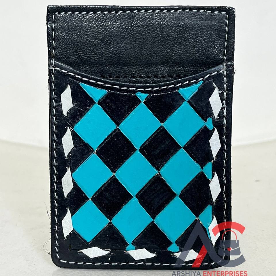 Type:Hand Tooled Checkered Leather Credit Card Holder Wallet