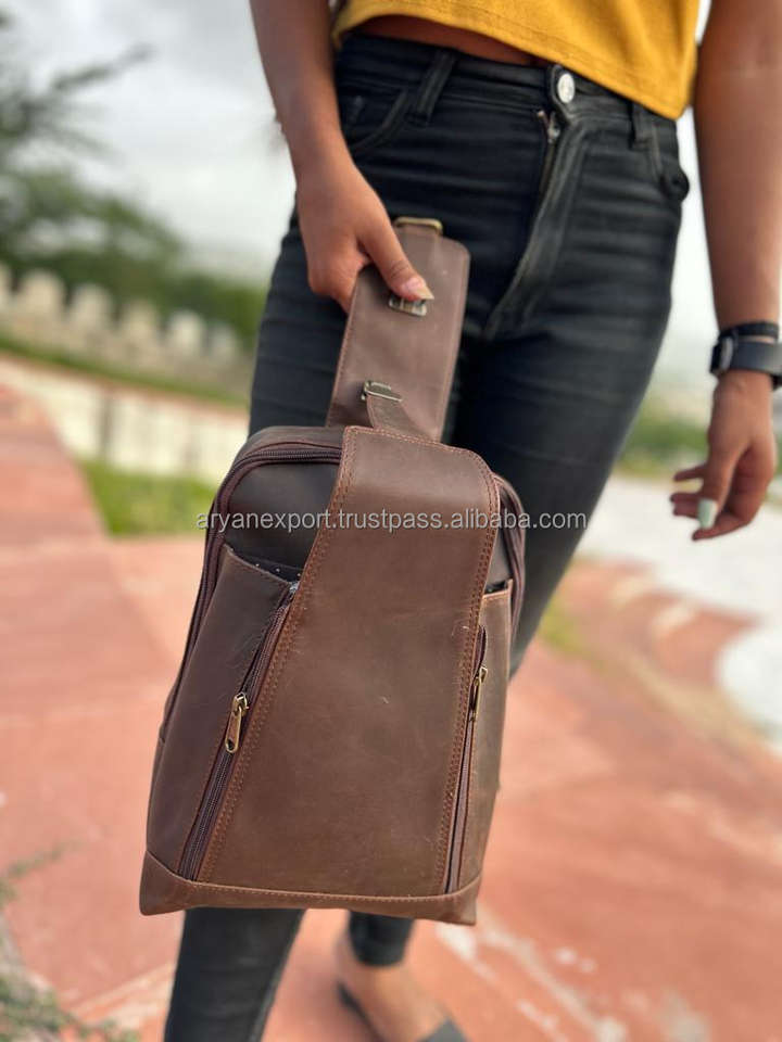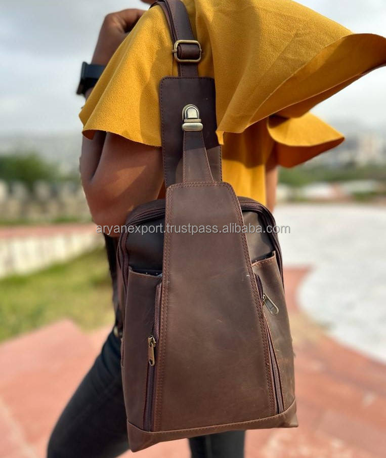New Style Handmade Full Grain Crunch Leather Vintage Style Unisex Sling Chest Made Unique Triangle Messenger Utility Cross Bags
