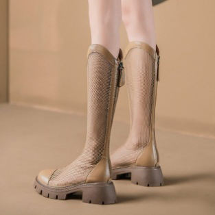 New Style Height-Enhancing Breathable Mesh Knee-High Boots Women Pull-On Slip Resistant Chunky Soles Lightweight