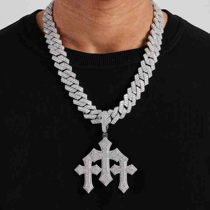 New Style High Quality Pass Diamond Tester Baguette Moissanite 925 Sterling Silver Three Cross Custom Hip Hop Mens Cross Pendant