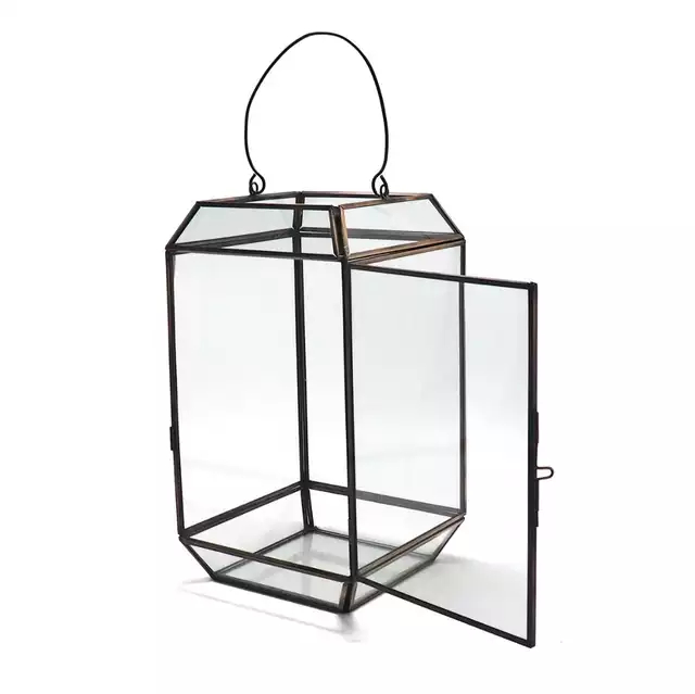 New Style Home Decor square Glass and Gold Lantern Candle Holder