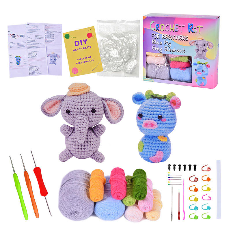 New Style Beginners Crochet Kit Kids DIY Yarn Animal Toy with Debutant Needle Hook Set for Learning Needlework