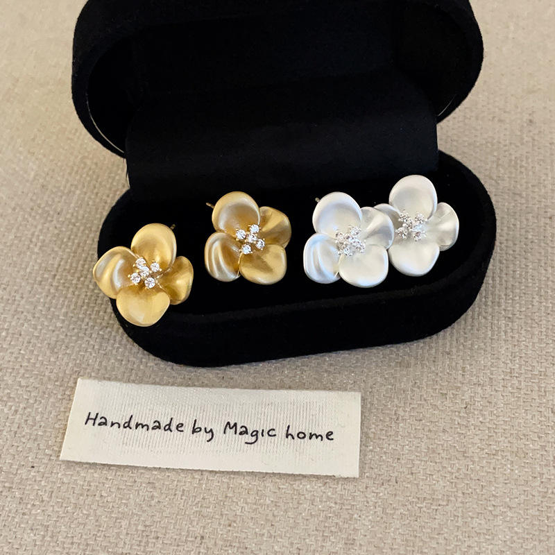 New Style Korean Blink Zircon Earrings Vintage Blossom Earrings Elegant Gold Silver Flower Stud Earrings for Girls