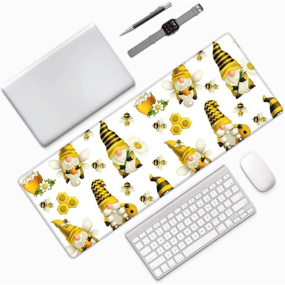 New Style Large Non-Slip Keyboard Writing Table Mat 31.5 X 11.8 Inch Cute Gnome Bees Honeycomb Desk Mat Stitched Edges for Office
