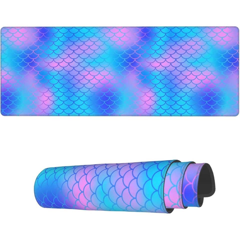 New Style Large Non-Slip Laptop Mouse Pad 31.5X 11.8 Inch Blue Mermaid Scale Desk Mat Stitched Edges Rubber Writing Table Mat for