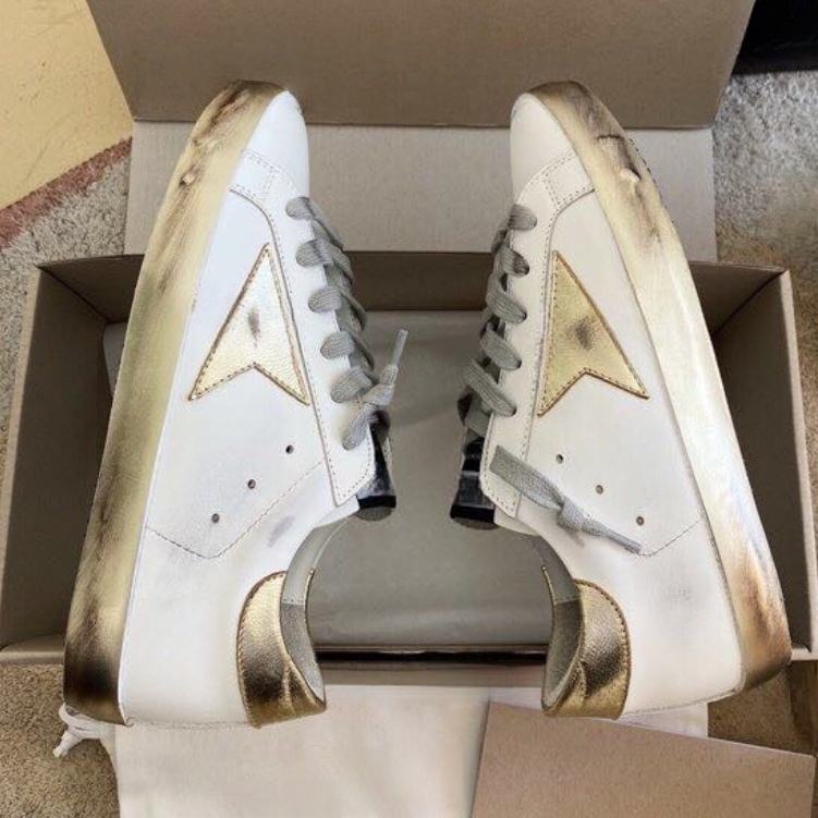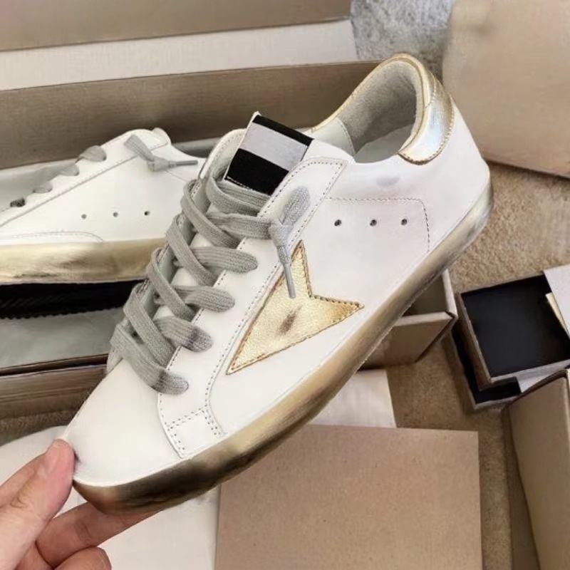 New Style Large Size 46 Designer Men's Genuine Leather Sports Shoes with Lace Golden Old Famous Star Sneakers for Women for Wint