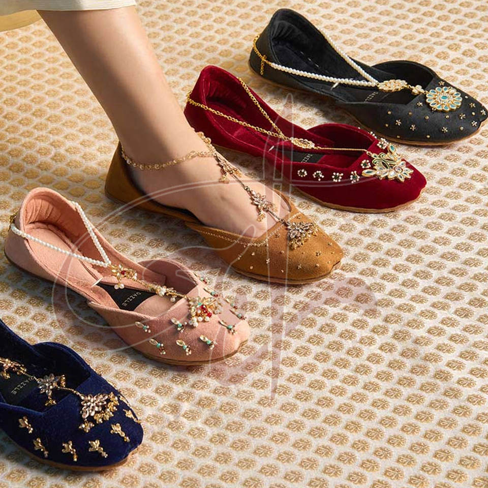 New Style Lightweight Women Khussa Fashion Trend Printed Anti-Slippery Handmade Genuine Leather Midsole High Quality Velvet
