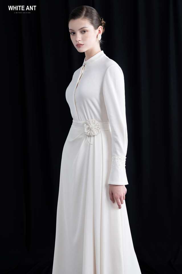 New Style Long Dresses Women Round Neck Jenny Embellished Maxi Dress 77% Acetate 23%Polyester Women'S Clothing Whiteant Factory