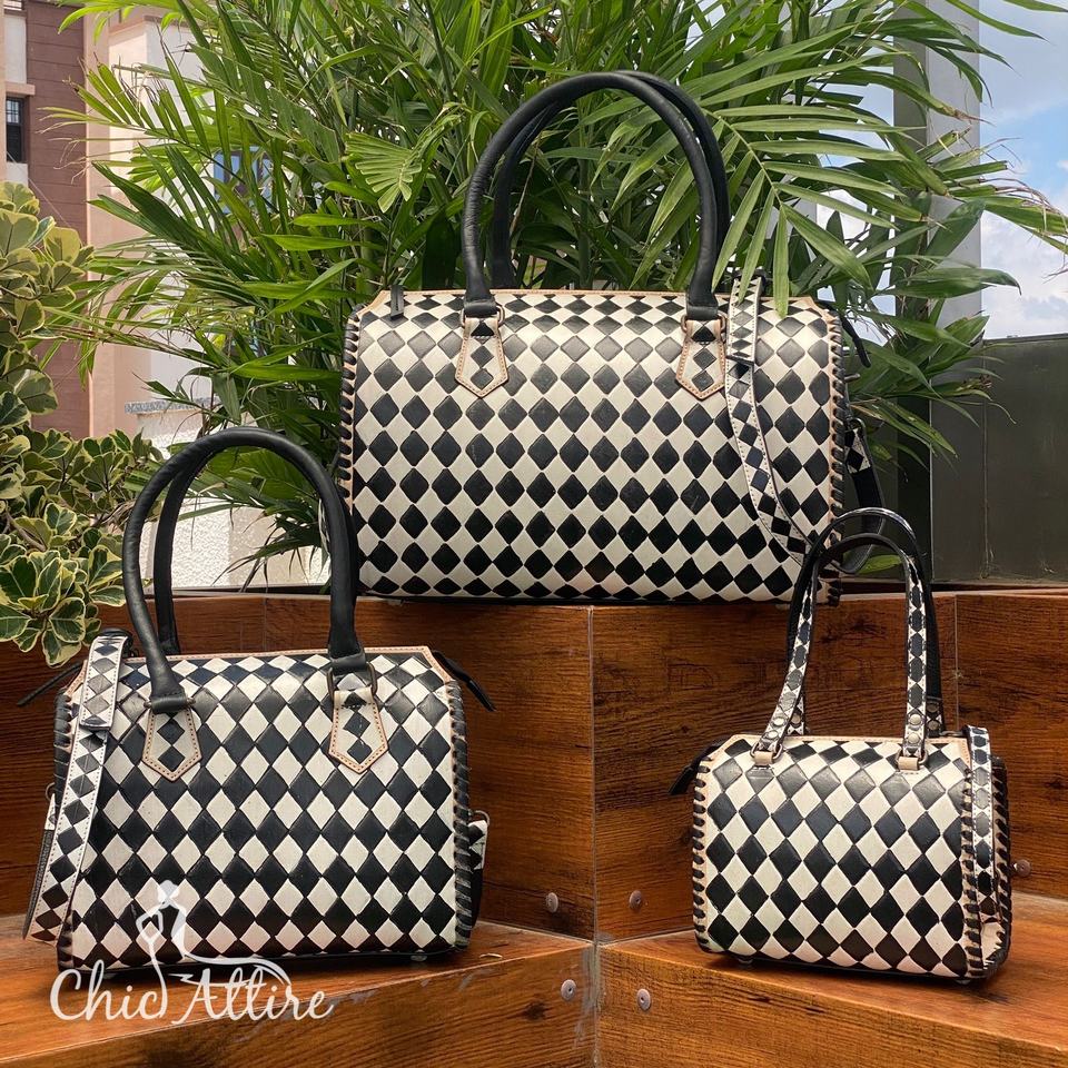 Product name:Hand Tooled Checkered Leather Travel 3-Piece Duffel Set