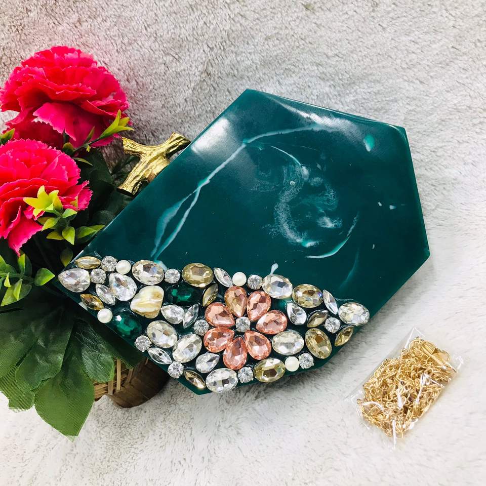New Style Luxury Fashion Handicraft Women's Clutch Bag with Crystal Stone Work Portable & Waterproof