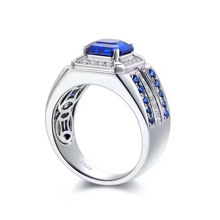 New Style Men Ring 925 Silver Lab Creative Gem Stone Labgrown Sapphire Men Ring