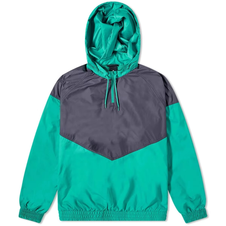 New Style Mens Retro Color Block Windbreaker Jacket Half Zip Hooded Lightweight Pullover Outdoor Streetwear Jacket