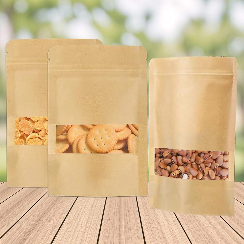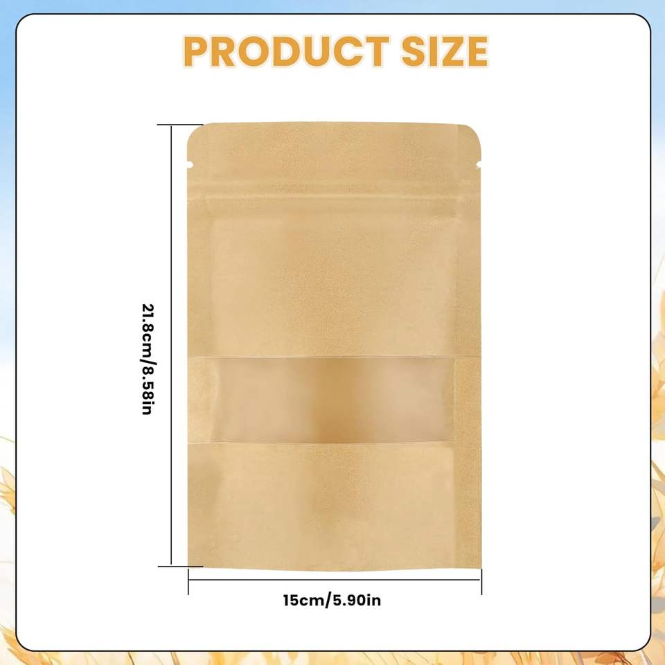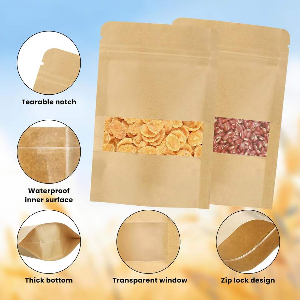 Product name:Self-supporting self-sealing kraft paper bag with window