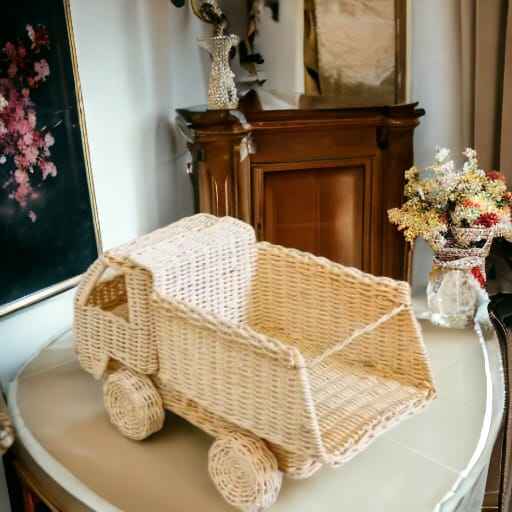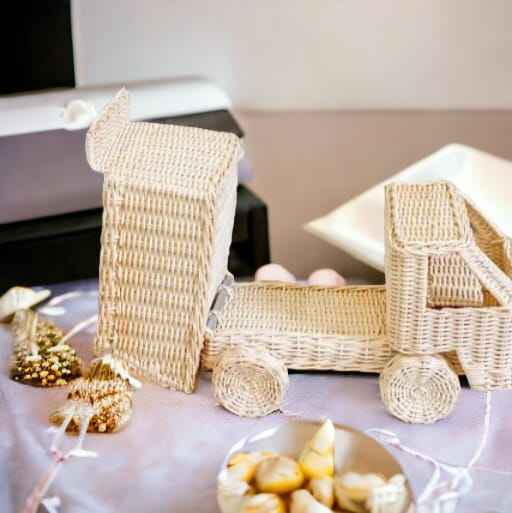 New Style Rattan Camper Van Rattan Toys Car Sustainable Eco Friendly Toy Kids Toddler Pretend Play Nursery Room Decoration