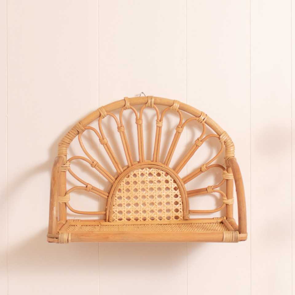 New Style Rattan Daisy Kids Bookcase Toddler Bookshelf Handmade Cute Small Wall Hanging Book Shelf for Baby Room Decor