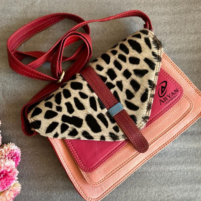 New Style Recycled Leather Stubby Color Sling Bag High Quality Animal Print Fur Leather Handbag Multi Colour Women Shoulder Bag