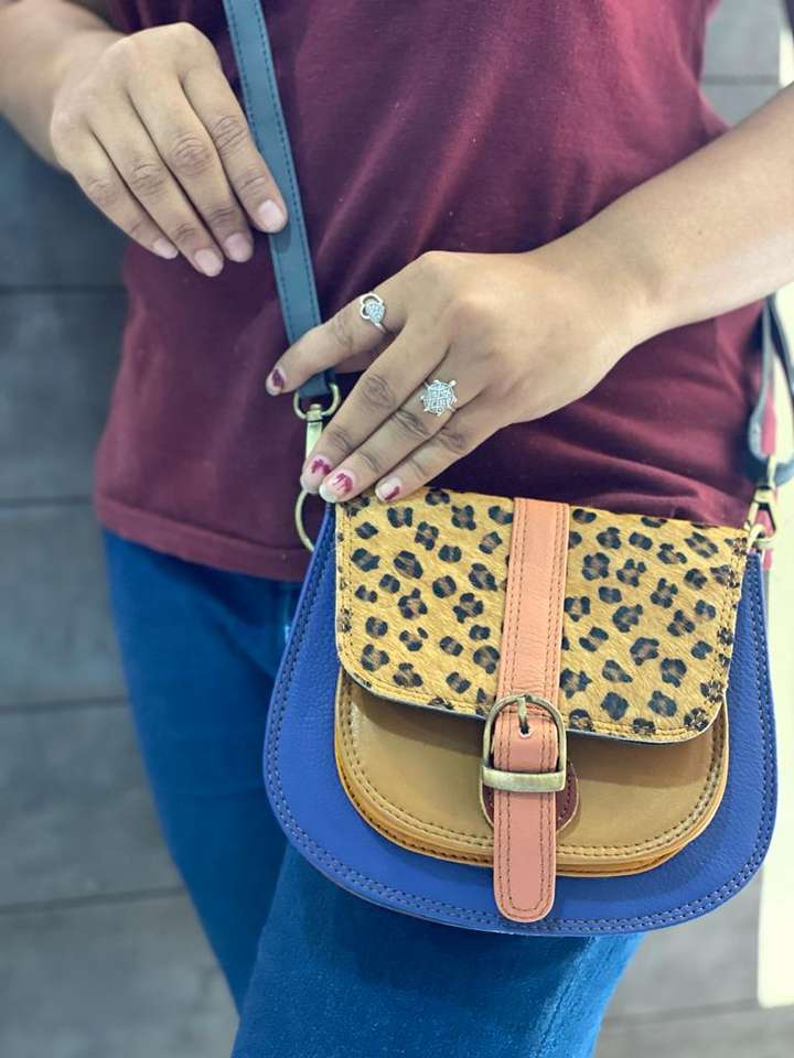 New Style Recycled Leather Stubby Color Sling Bag High Quality Animal Print Fur Leather Handbag Multi Colour Women Shoulder Bag