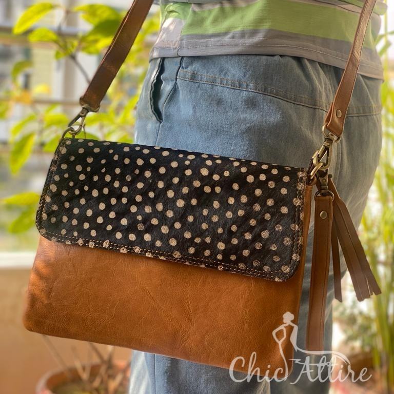 New Style Recycled Leather Stubby Color Sling Bag High Quality Animal Print Fur Leather Handbag Women Shoulder Bag