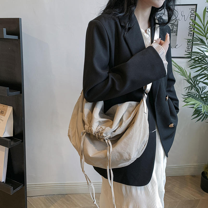 New Style Simple Big Nylon Hand Bag Zipper Women Tote Bags Handbag Fashionable Casual Lady Drawstring Ruched Shoulder Bag