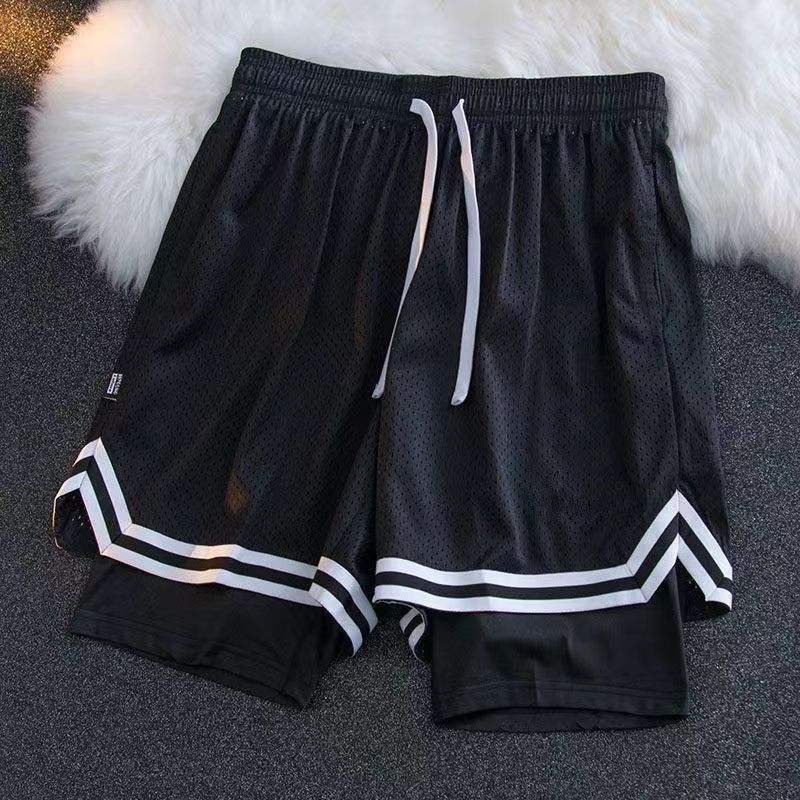 New Style Sporty Solid Men's Basketball Training Running Shorts with Quick Dry Feature Summer Double Knee Design