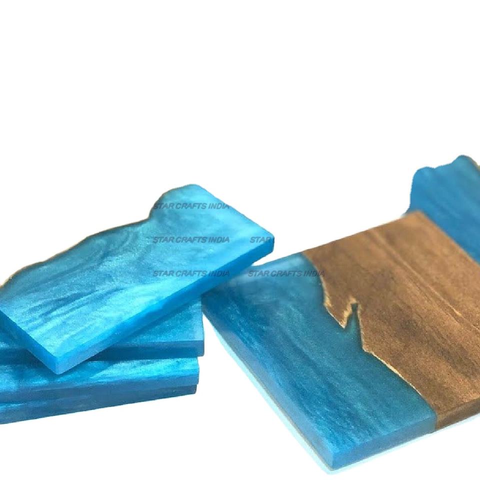 New Style Stock Colorful Resin Wooden Combined Best Coaster Olive Wood Square Coasters with Clear Resin Edge From SCI
