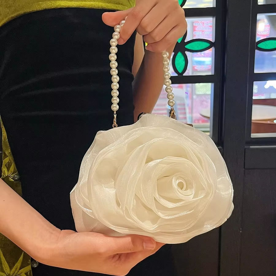 New Style Vintage Pearl Camellia Bride Wedding Bag Banquet Evening Purse Fairy Crossbody Small Round Handbag