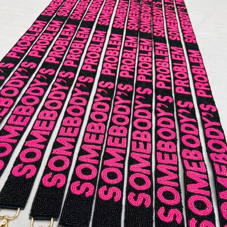 New Style Women's Handbag SOMEBODY'S PROBLEM Embroidery Beaded Door Straps Pink White Cross-Body Strap by glowin fashion