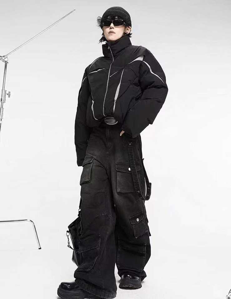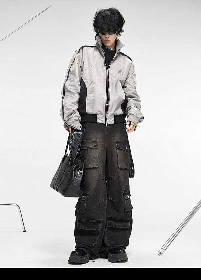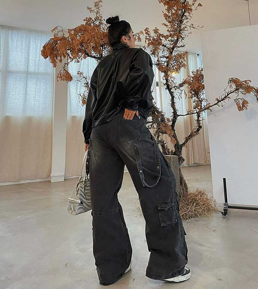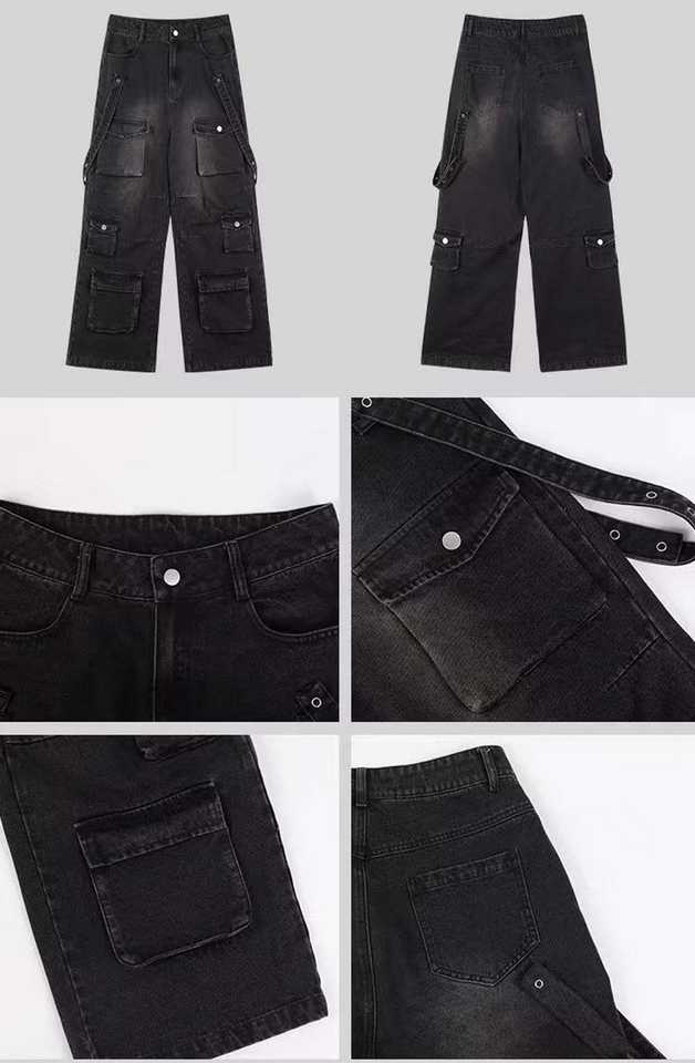 New Style Women's Mid Waist Denim Jeans Regular Fit Straight-leg Solid Button Multi Cargo Pockets High Street Retro Best Prices