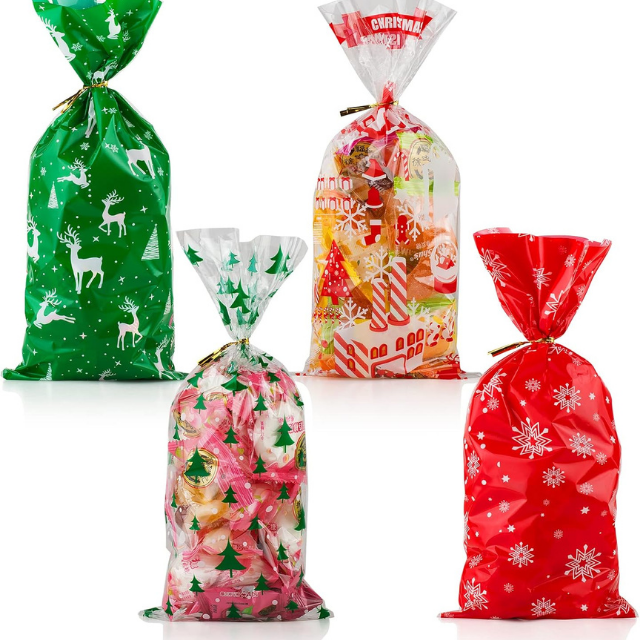 New Styles 50pcs Christmas Candy & Jelly Snack Biscuit Bags Cellophane OPP Waterproof Gift Party Holiday Plastic Packaging