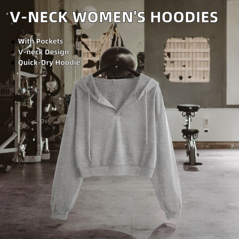 New Styles Autumn Printed Anti-Shrink Short Drop-Shoulder Sleeves Women Hoodies V Neck Hooded Polyester/Cotton Custom Logo