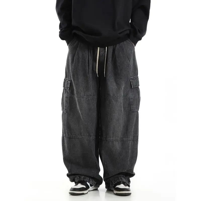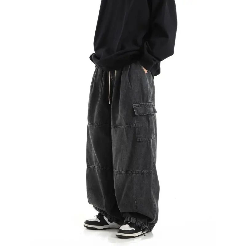 New Stylish Black Baggy Cargo Jeans Trousers Men Streetwear Casual Jogging Wide leg Oversize Old Money Acid Wash Denim Pants